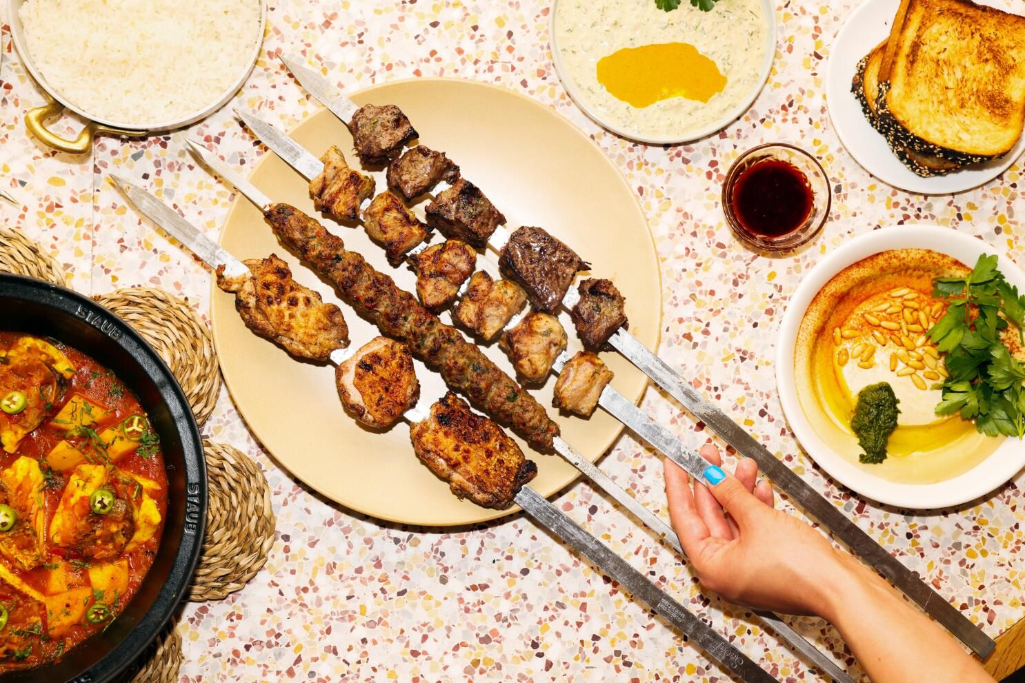What to Order: Turmeric Mussels, Shawarma Plate, Hummus Tahini with Challah, Falafel, Chicken Shishlik, Pork or Lamb Kabob, Red Snapper Tagine, Beef Shishlik, Soft Serve, Banana Cake